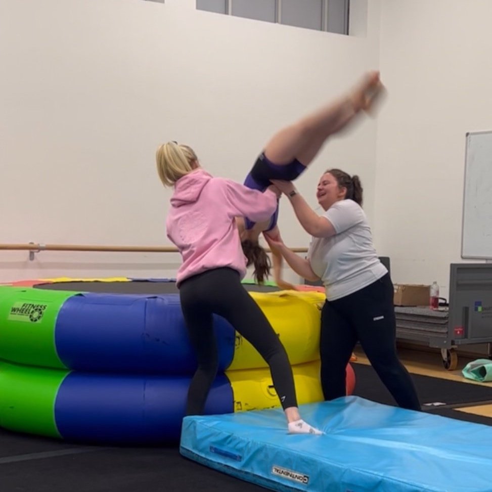 Our Tumble and Vault class is certainly jam-packed! These classes focus on tumbling skills such as flics, handsprings, somersaults and ariels; and more advanced vaulting skills than our usual recreational programmes. Prior experience of gymnastics and having the foundations (handstand, cartwheel, rolls, strong bridge etc) nailed is compulsory for this class. If you would like to show your interest and find out if this class is suitable for your child, you can contact us here or fill in our class booking form